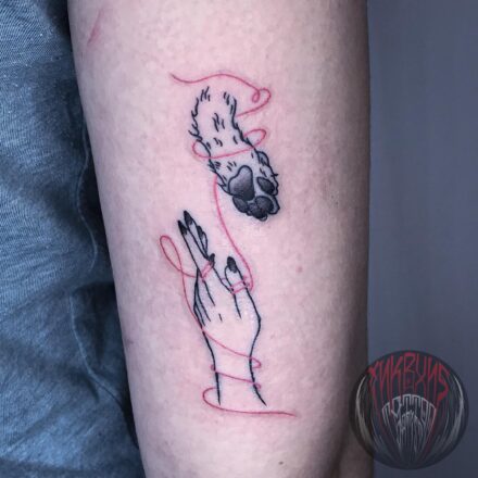 Tetování ruka s psí tlapkou a nápisem na předloktí