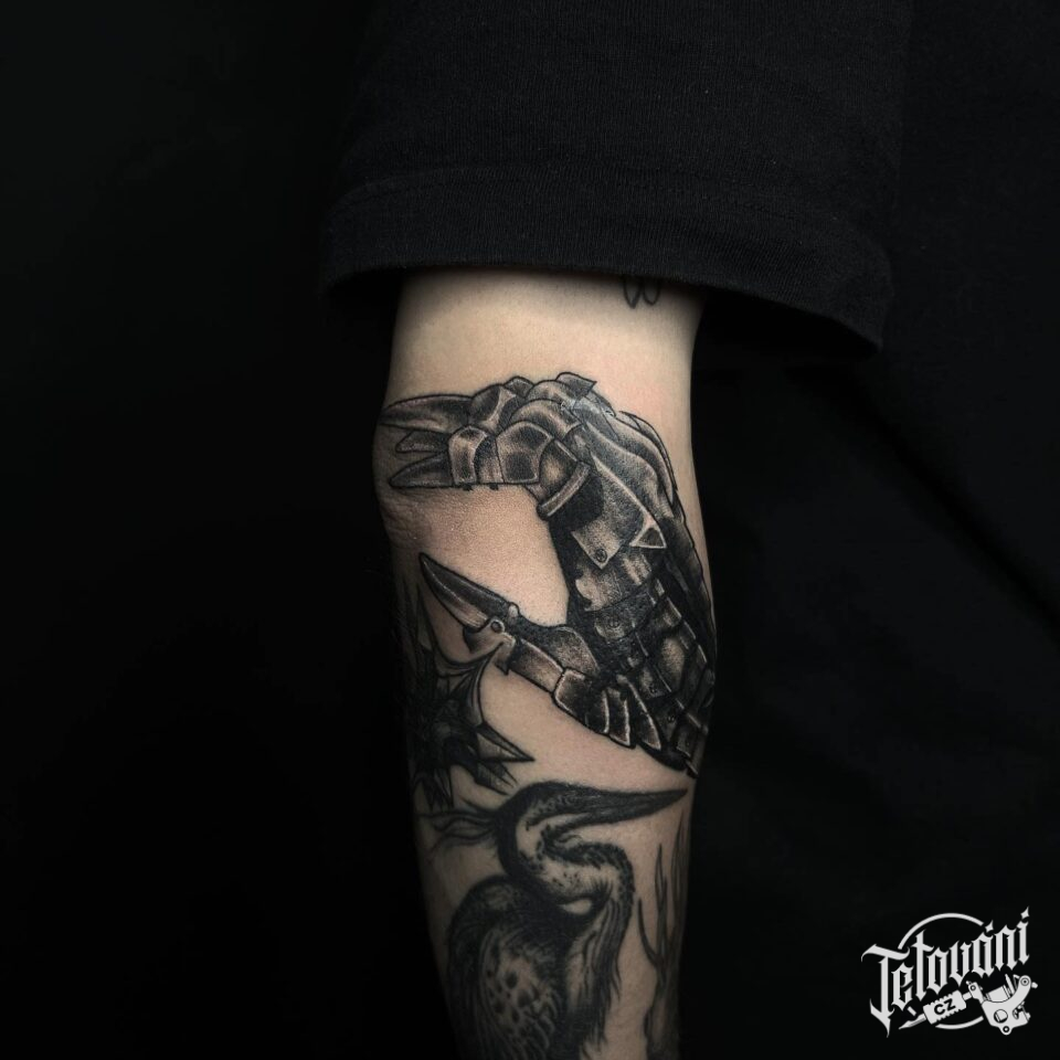 Tetování ruka, zvíře pták, znaky a symboly na předloktí