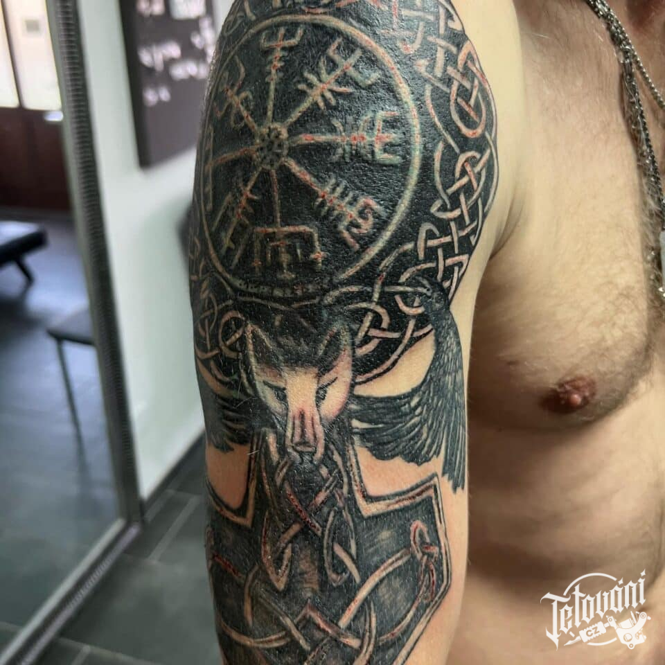 Tetování runa ochranné symboly na rameno