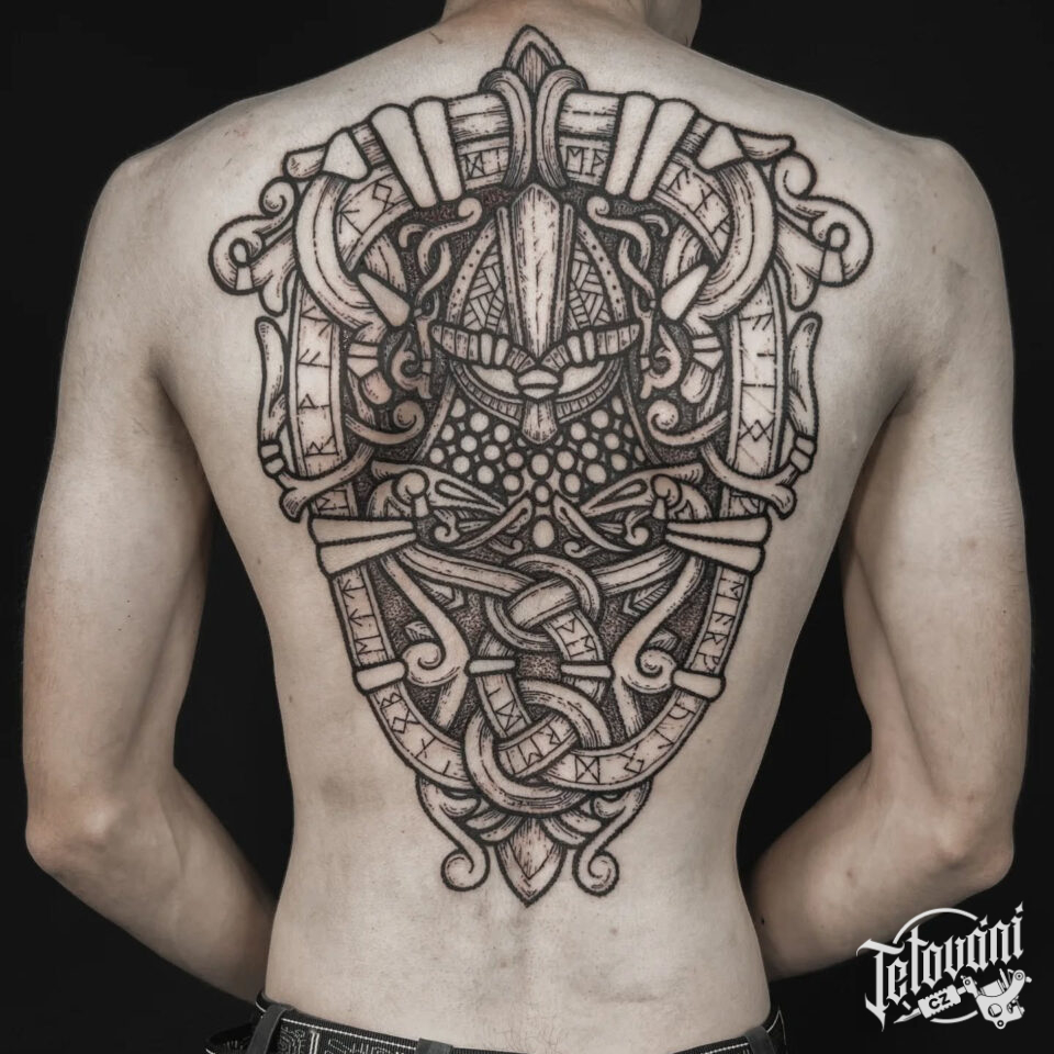 Tetování runa ochranné symboly, ornamenty na zádech