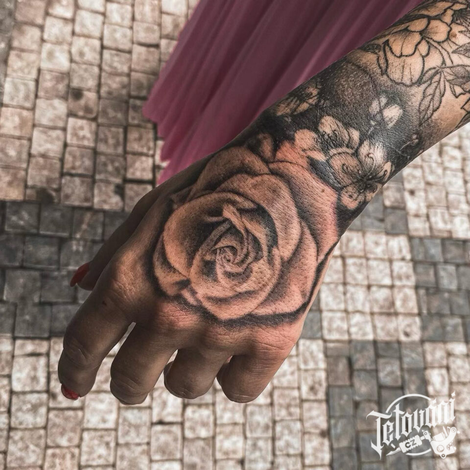 Tetování růže, květina na hřbet ruky
