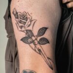 Tetování růže, meč na paži