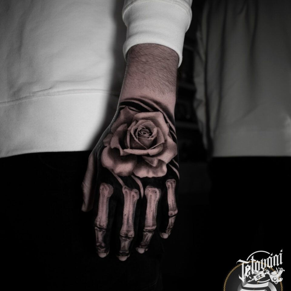 Tetování růže na hřbetu ruky