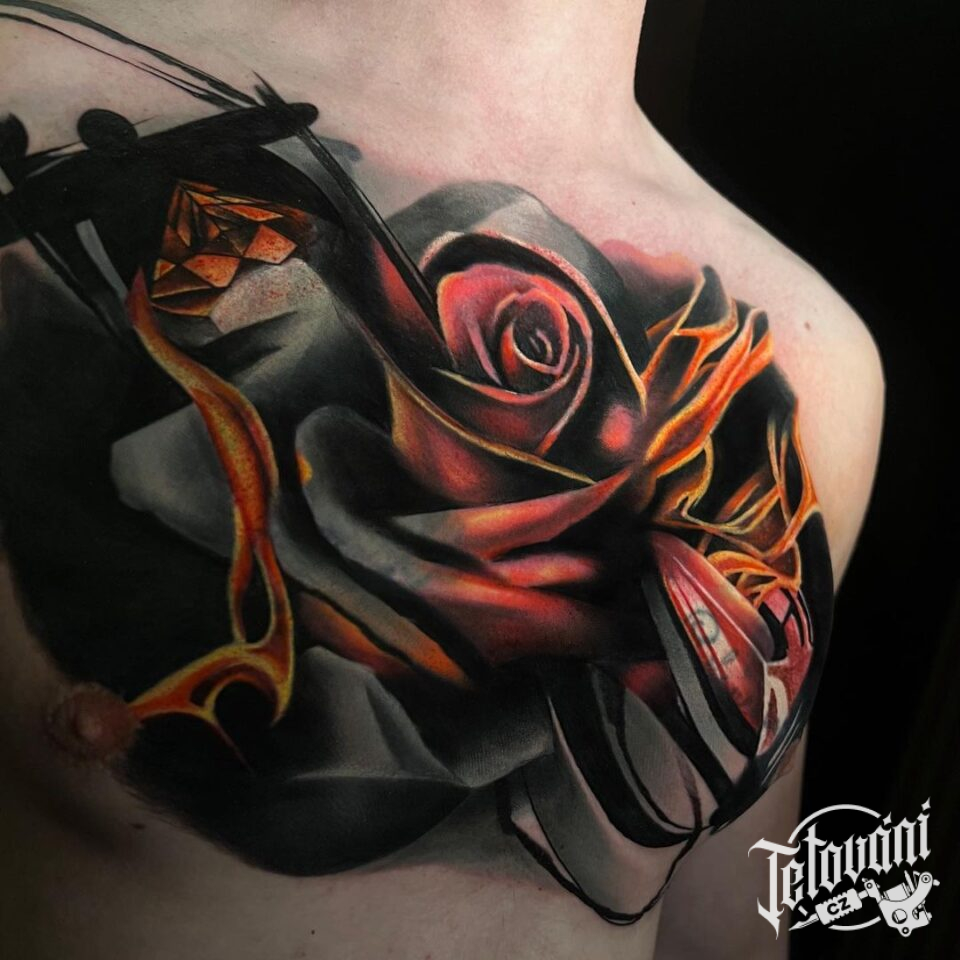 Tetování, růže na hrudník
