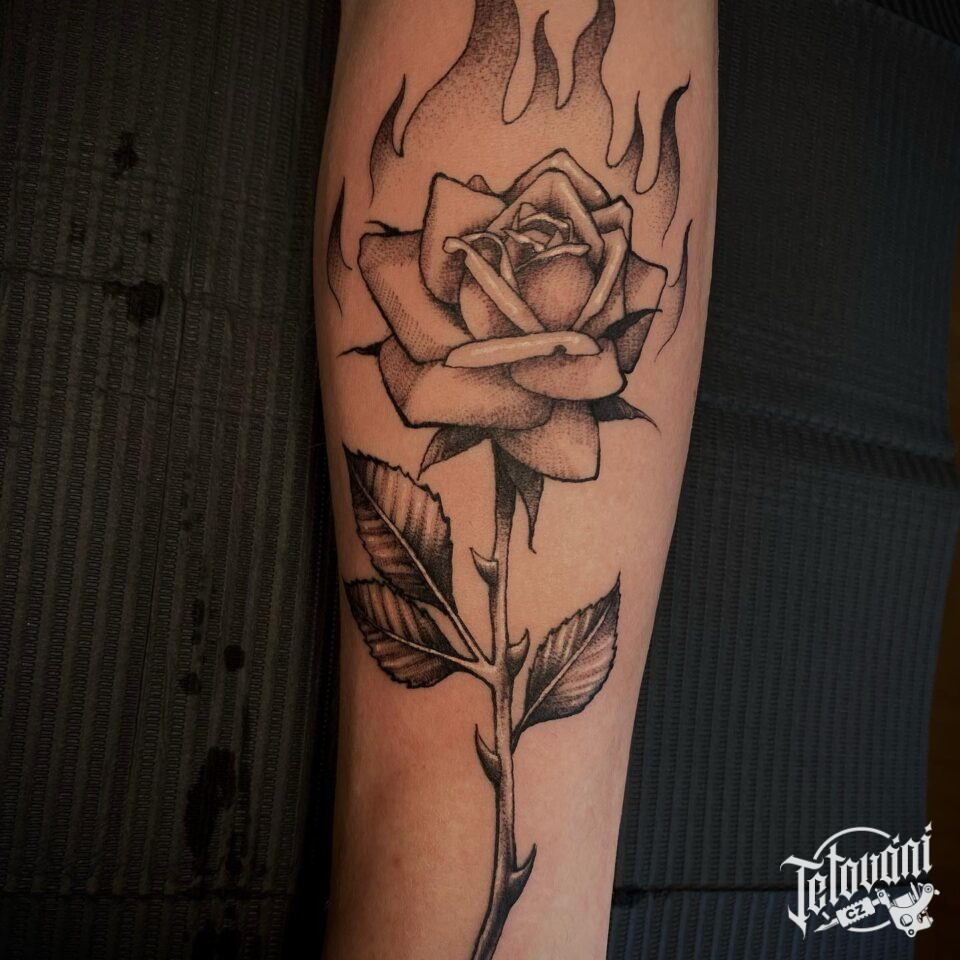 Tetování růže na předloktí