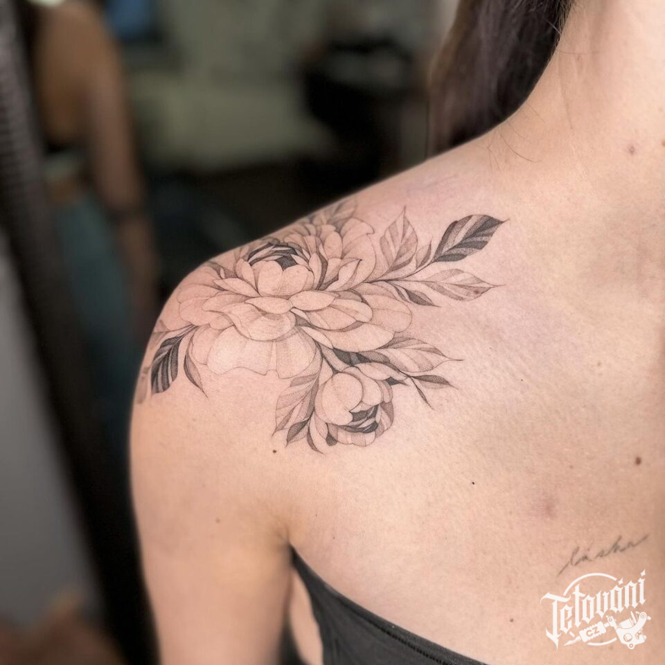 Tetování růže na rameni
