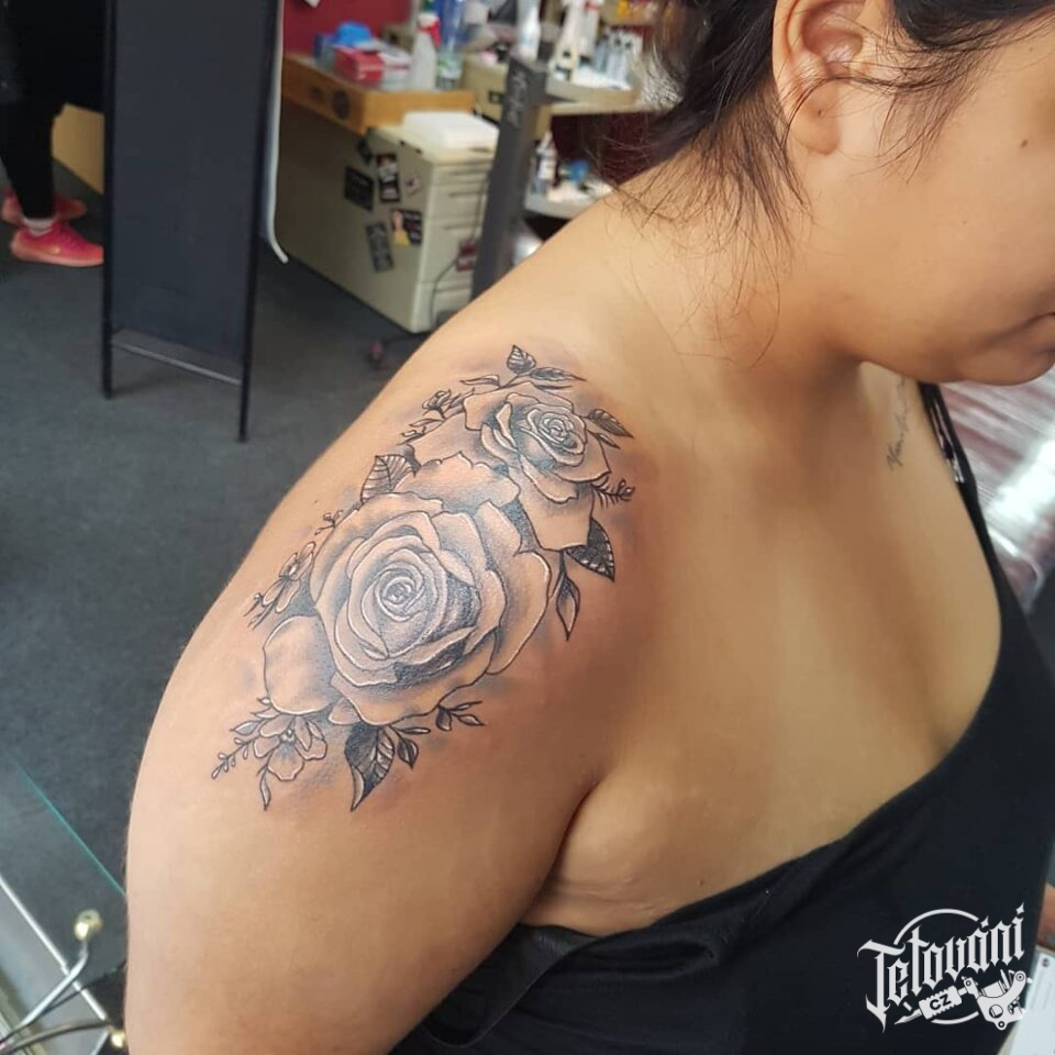 Tetování růže na rameno