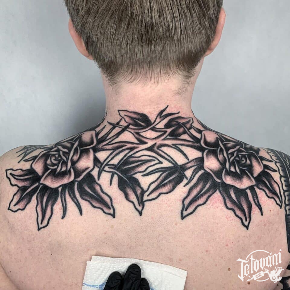 Tetování růže na zádech