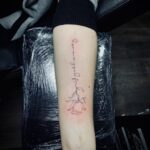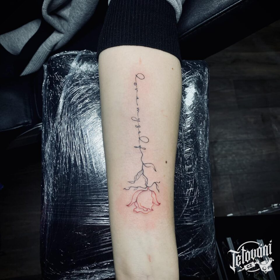 Tetování růže, nápis na předloktí