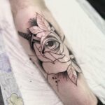 Tetování růže, oko, meč na holeni