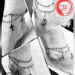 Tetování růženec a řetízek se srdcem a písmenem na kotníku