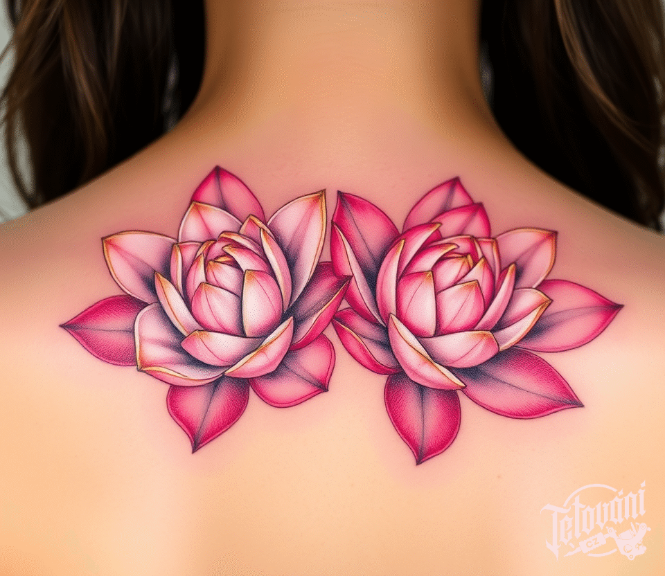 Tetování růžové lekníny na záda