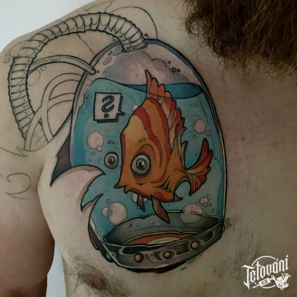 Tetování ryba v nádobě na hruď