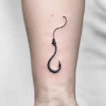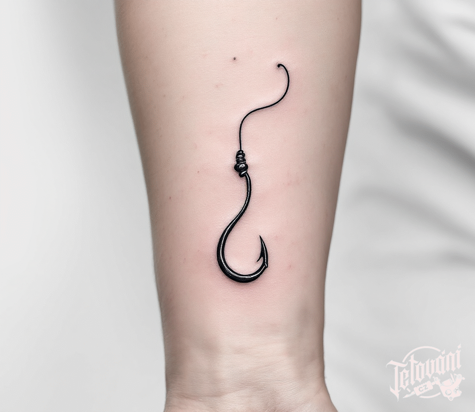 Tetování rybářský háček s udicí na předloktí