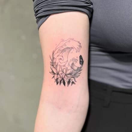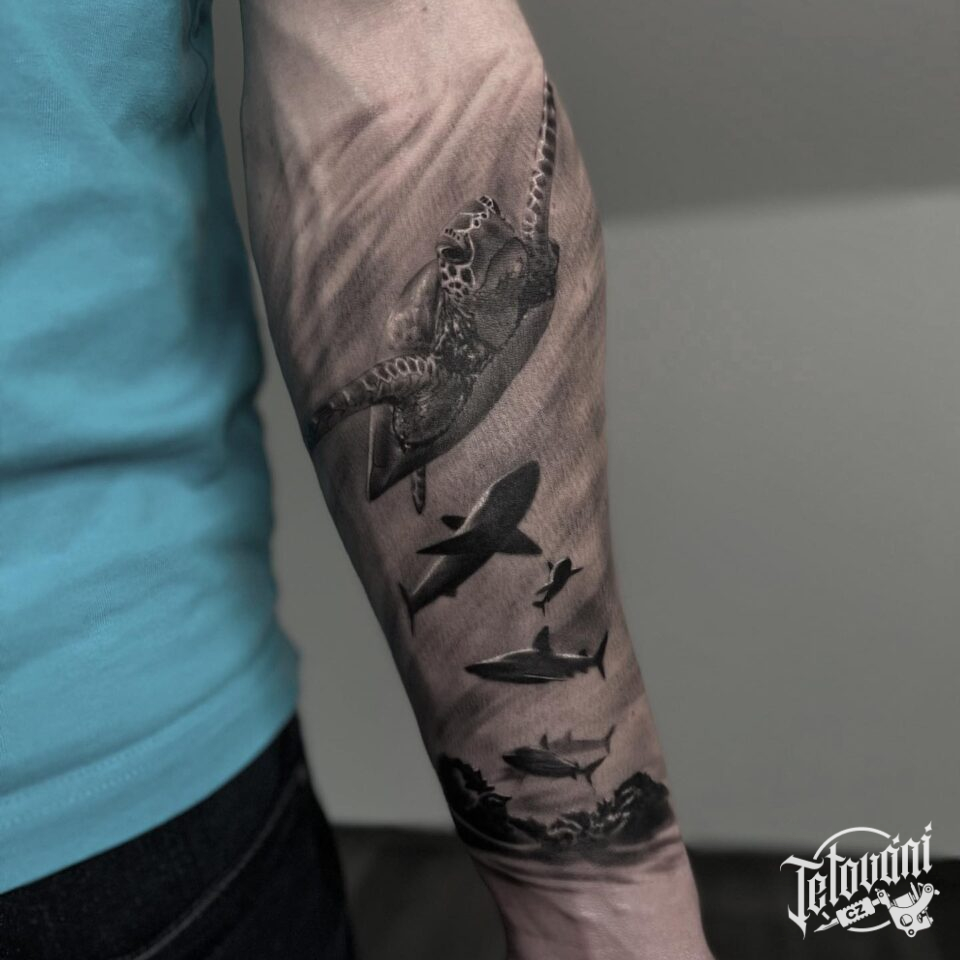 Tetování ryby, moře na předloktí