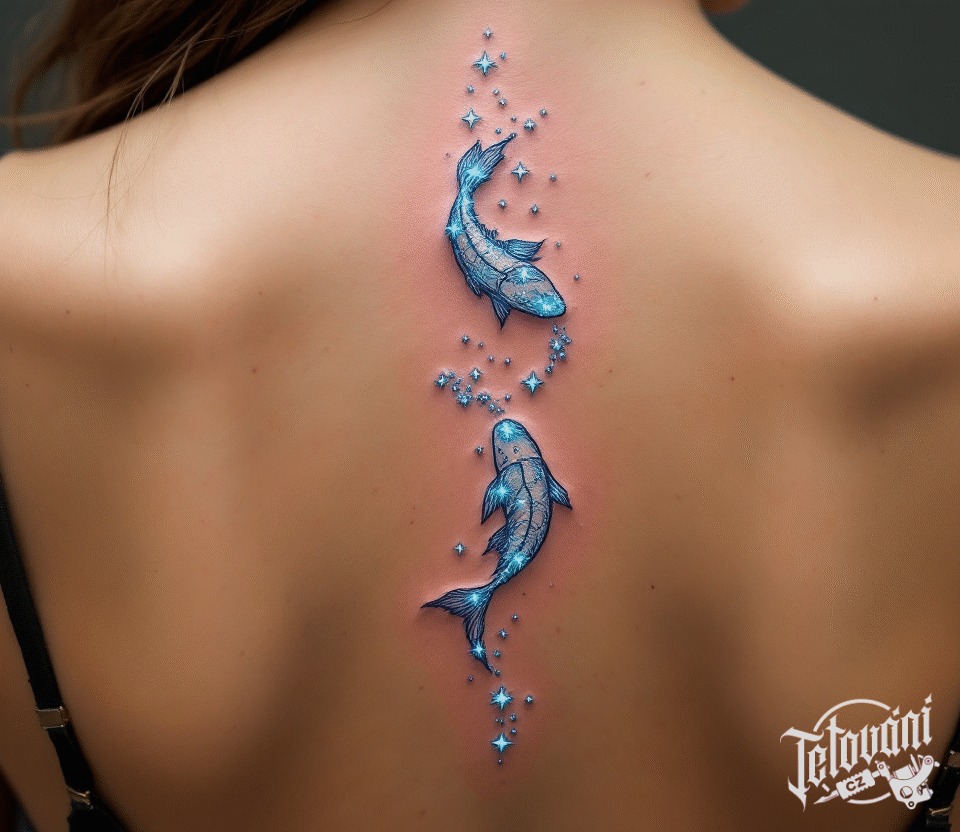 Tetování ryby souhvězdí a znamení zvěrokruhu na páteř
