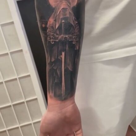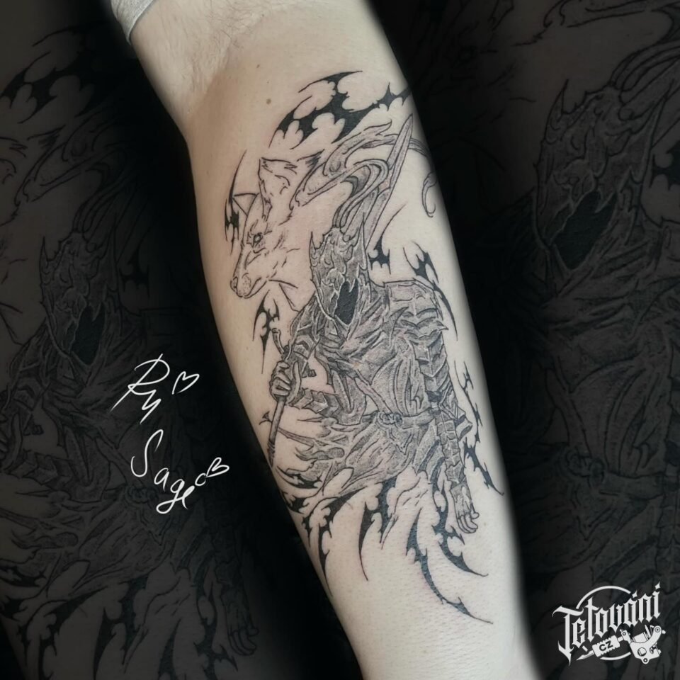 Tetování rytíř Artorias z filmů a pohádek na lýtku