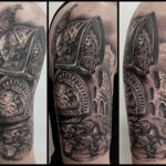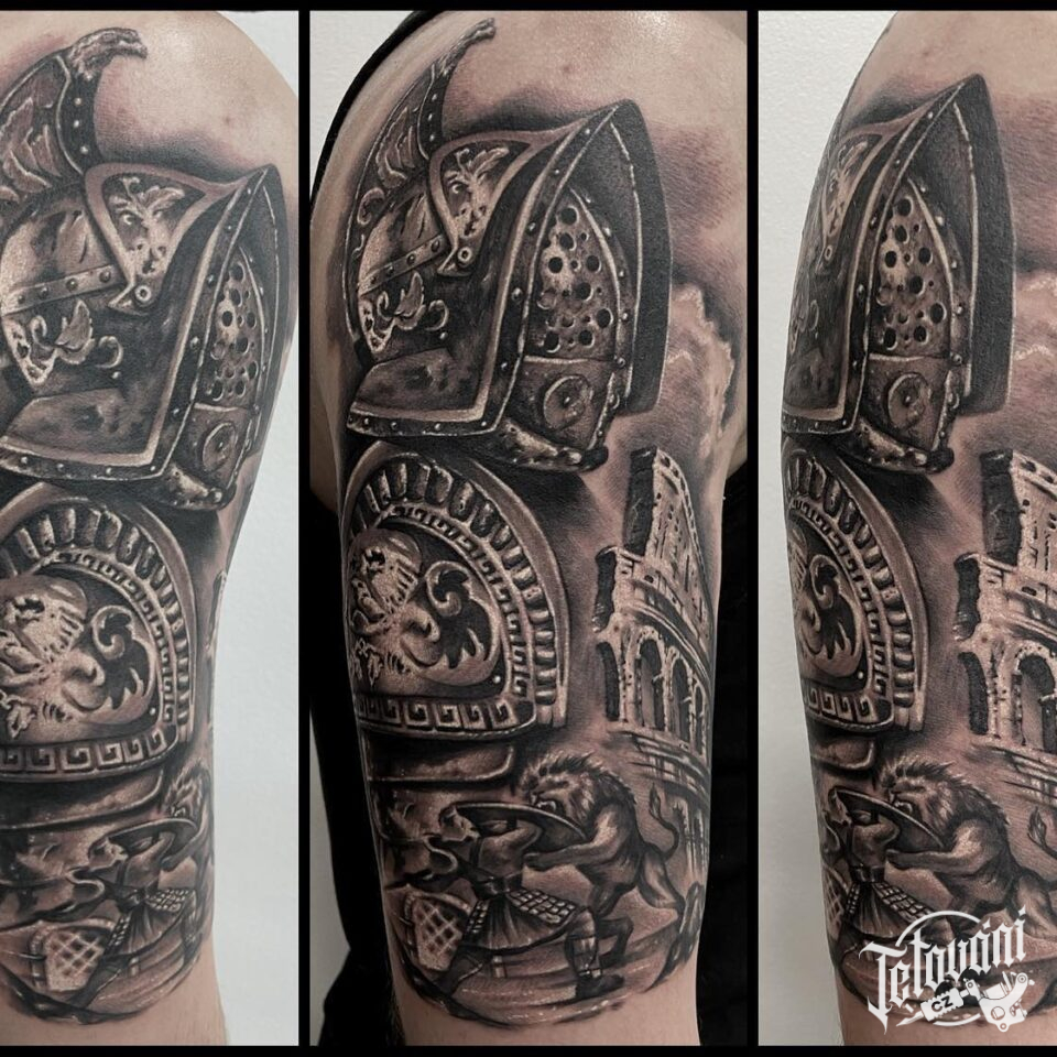 Tetování rytíř, bojovník se lvem, zvíře na rameno