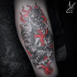 Tetování rytíř kostlivec na lýtku