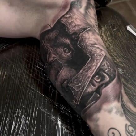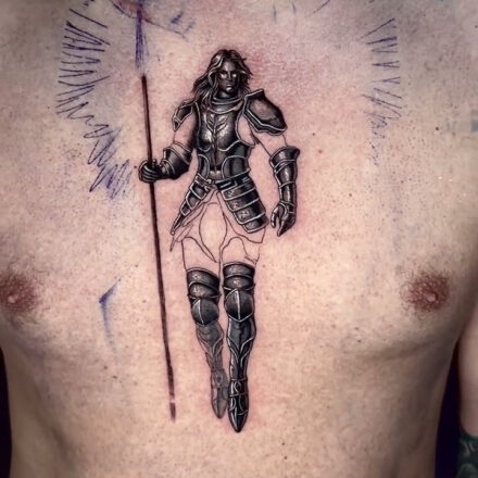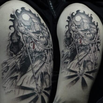 Tetování rytíř na holeň