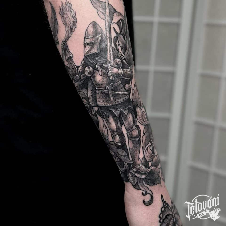 Tetování rytíř na předloktí