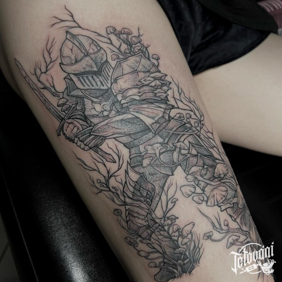 Tetování rytíř na stehně