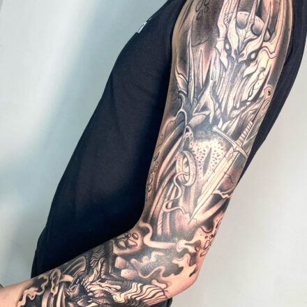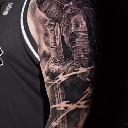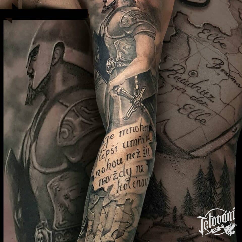 Tetování rytíř s mečem, rukáv