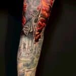 Tetování rytíř z filmů a pohádek, znaky dobra a zla na ruku