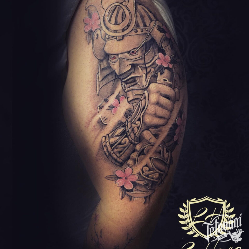 Tetování samuraj a květi...