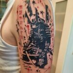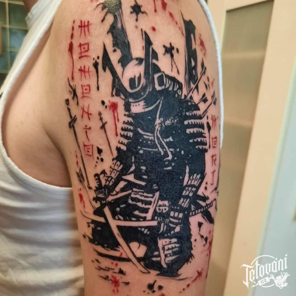 Tetování samuraj a znaky a symboly na rameno
