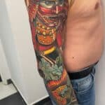 Tetování samuraj, had a květiny na rukávu