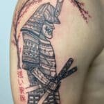 Tetování samuraj, květina Sakura na rameno