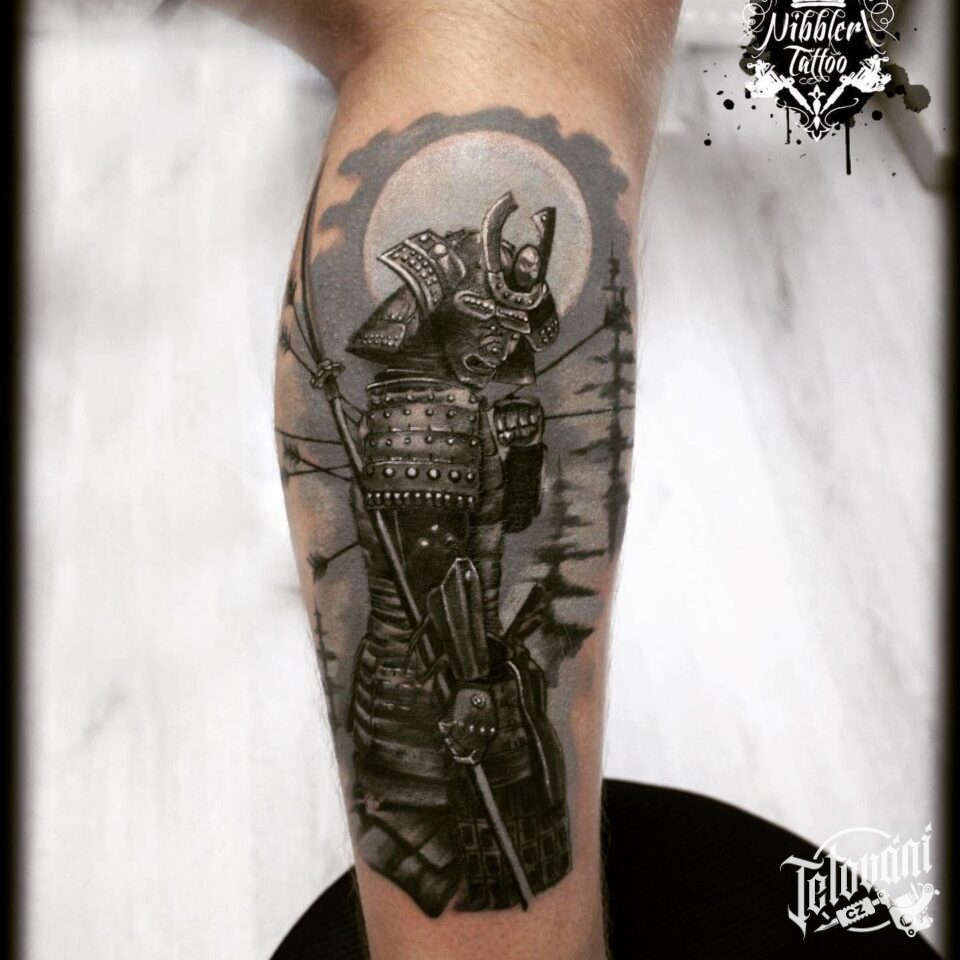 Tetování samuraj na lýtko