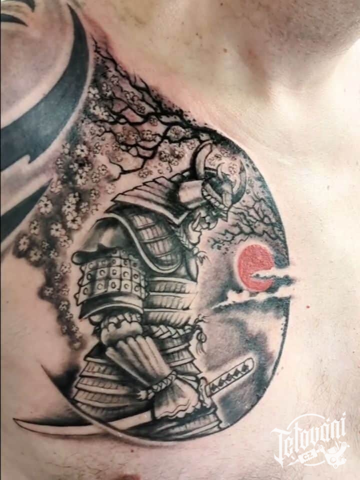 Tetování samuraj na prso