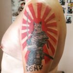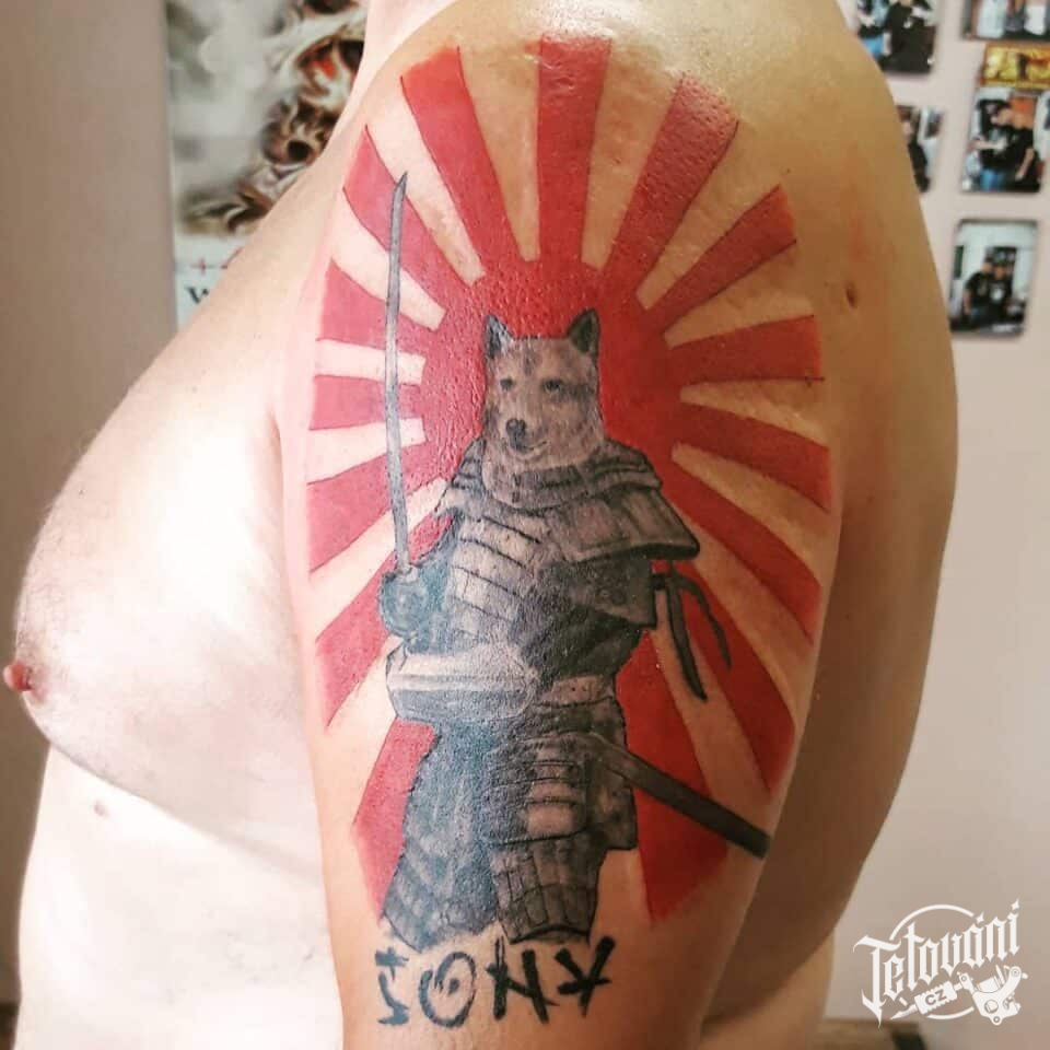 Tetování samuraj, pes na paži