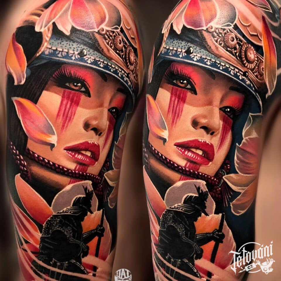Tetování samuraj, portrét Gejši na rameni