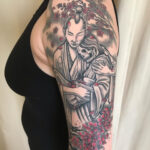 Tetování samuraj s kostlivcem na rameni