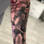 Tetování samuraj, strom sakura na předloktí