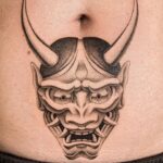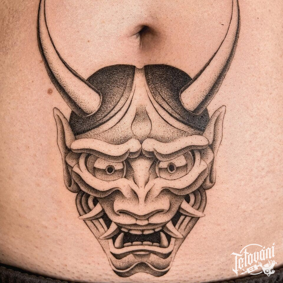 Tetování samurajská maska na břichu