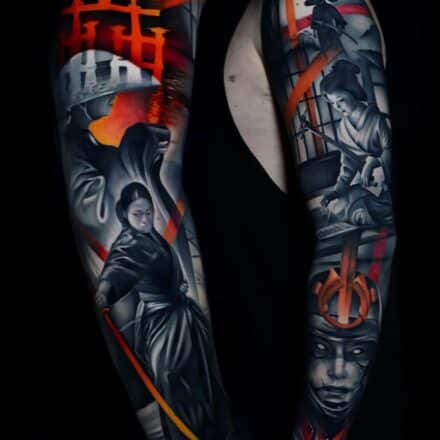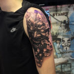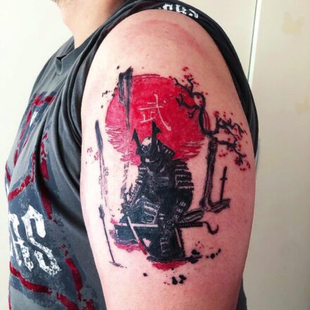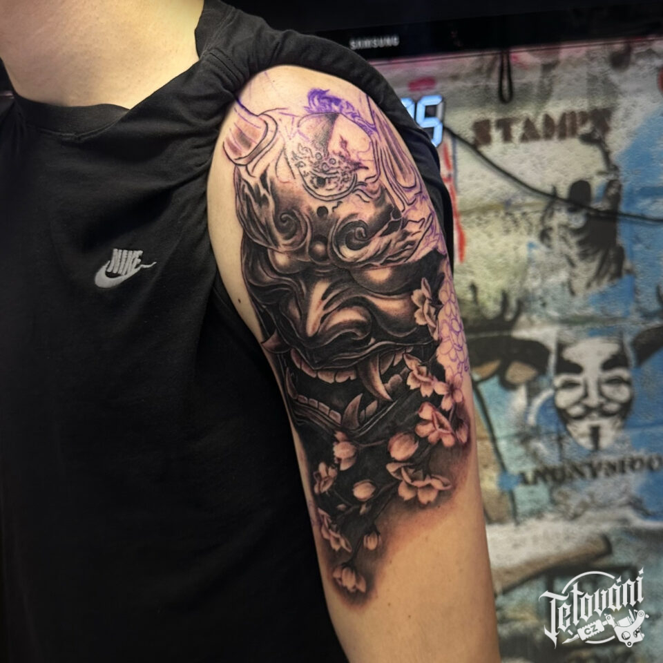 Tetování samurajská maska na paži