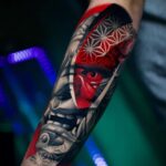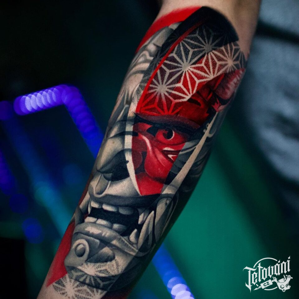 Tetování samurajská maska na předloktí