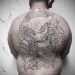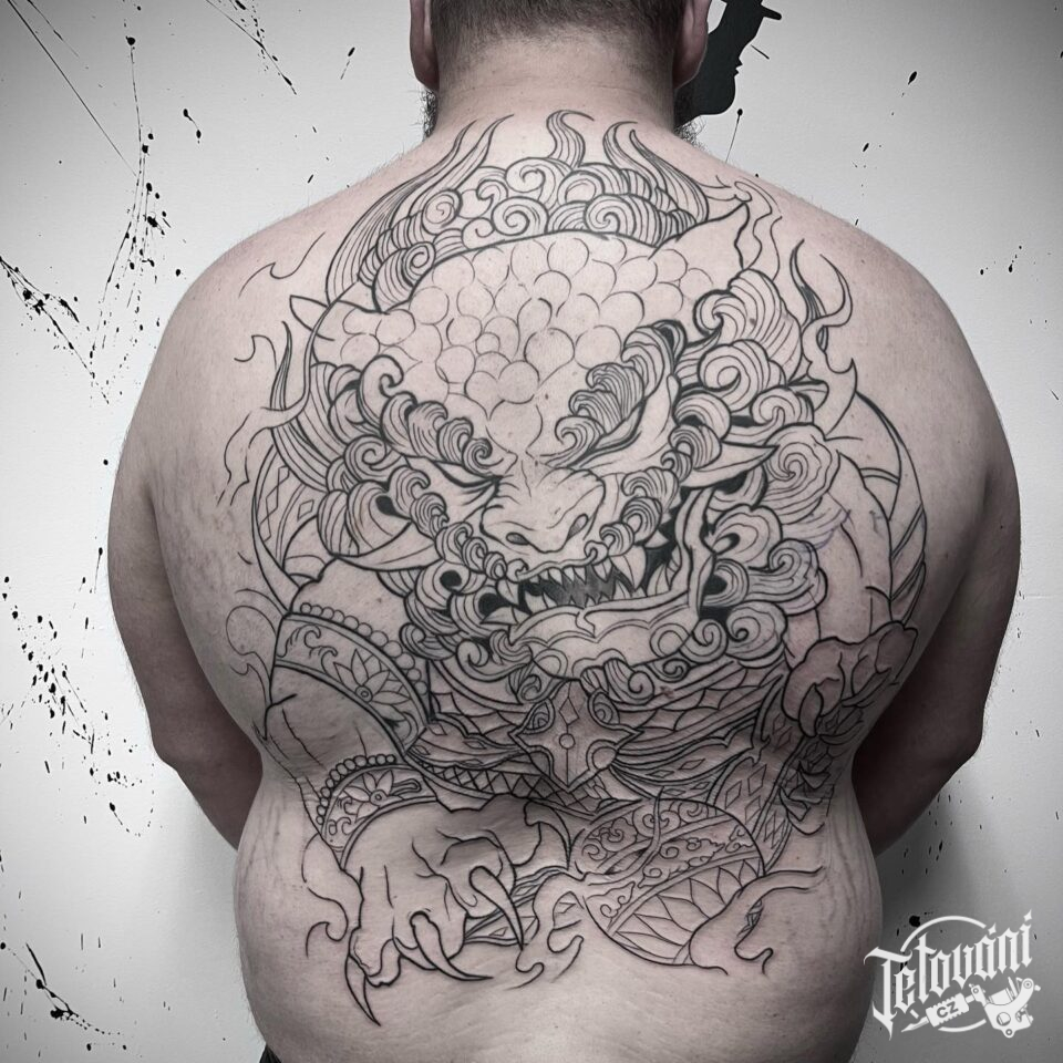 Tetování samurajská maska na zádech