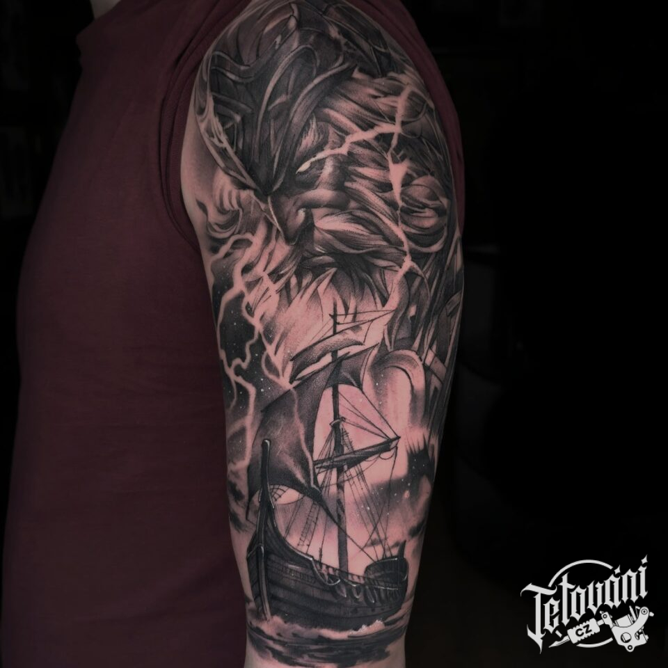 Tetování severská mytologie, mýtická bytost, viking na rameno
