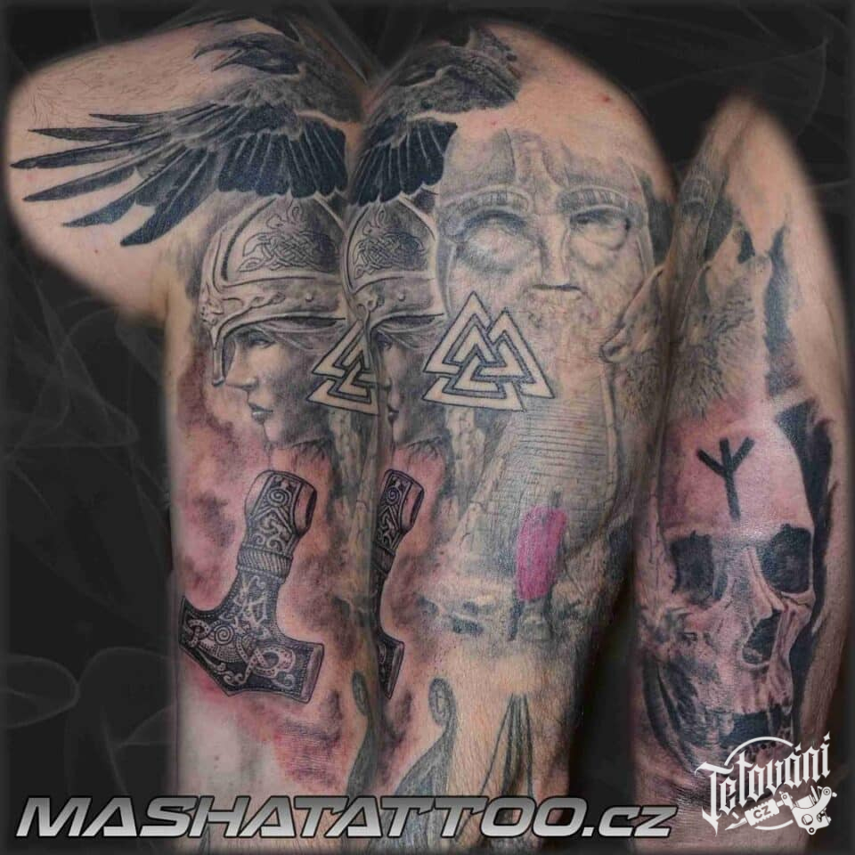 Tetování severská mytologie, viking na paži