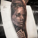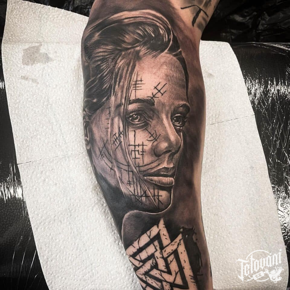 Tetování severská žena, portrét, runa ochranné symboly lásky