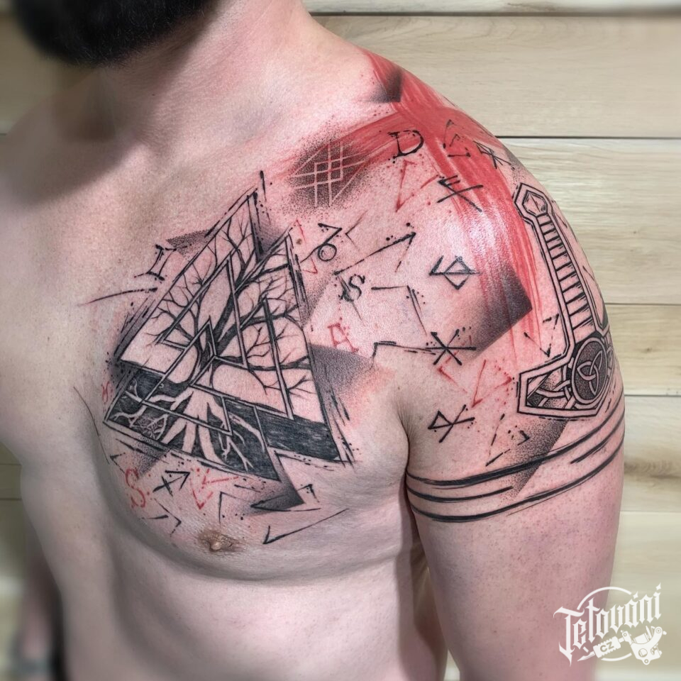 Tetování severské symboly, runy na rameni