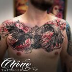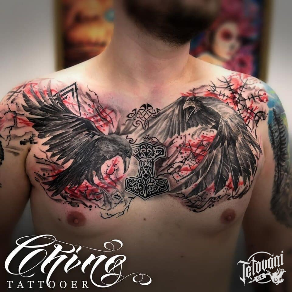 Tetování, severské tetování, zvířata, ptáci, havrani a znaky a symboly na prsa