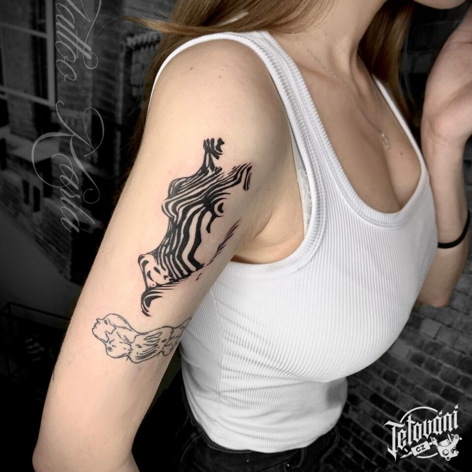 Tetování silueta ženské postavy na rameno