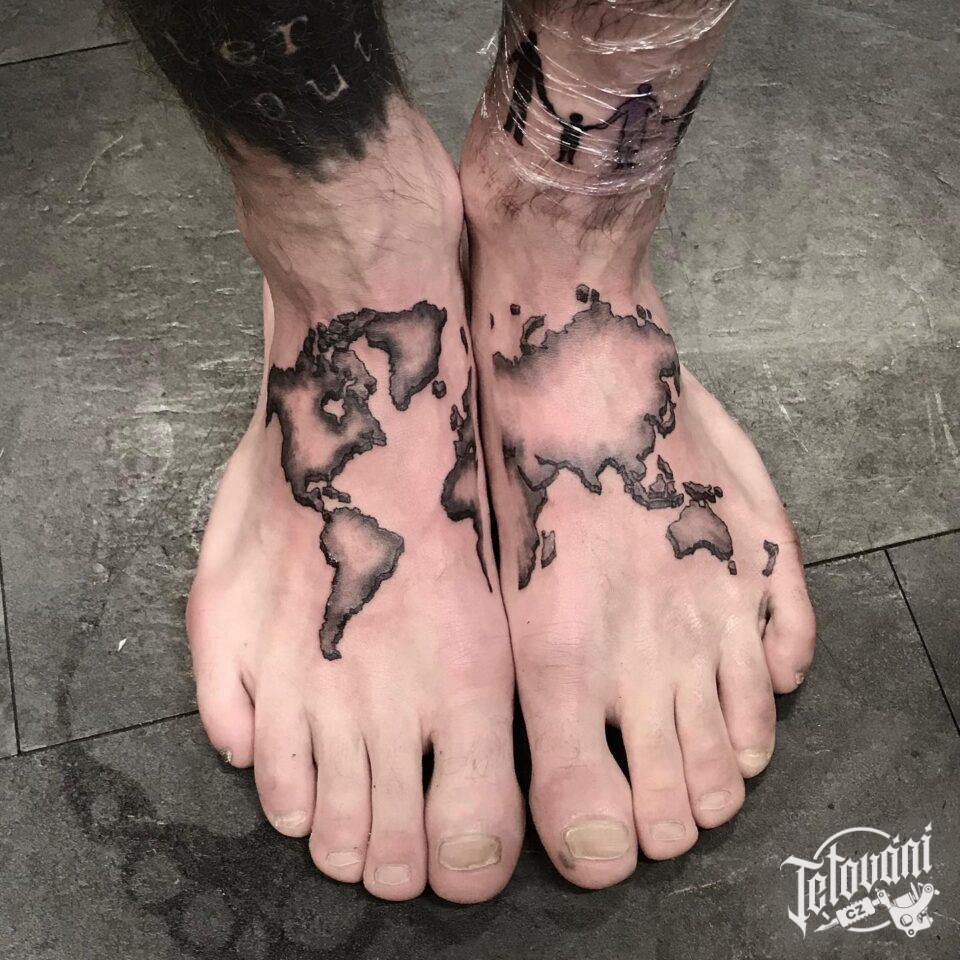 Tetování cestování, mapa na nártu