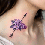 Tetování šíp s květinami na krk